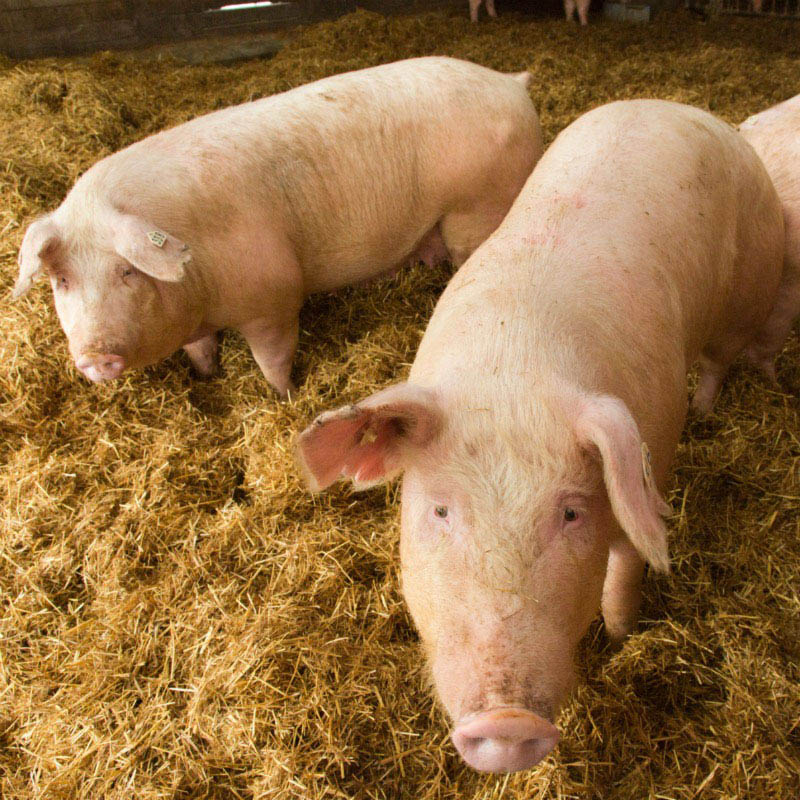 There are 3,300 pig farms in Minnesota, and Minnesota ranks second in the United States in number of pigs raised. Two common breeds raised today are American Landrace and American Yorkshire. Many farmers also raise crossbreeds. Most modern hogs live in climate-controlled barns where feeding, healthcare, and manure management are carefully regulated. Pigs are typically slaughtered at around 6 months of age, at which point they typically weigh 250-300 pounds.