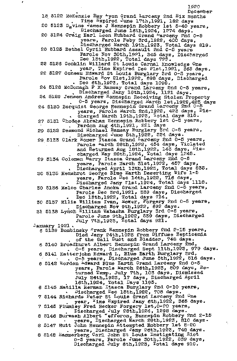 6 5139 Bombinsky Frank Hennepin Robbery 2nd 2-15 years,