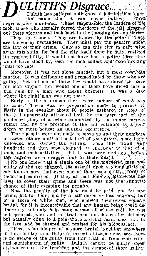 history of a more brutal lynching anywhere in the country and Duluth’s