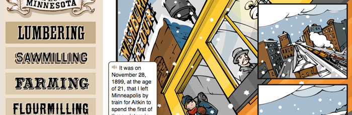 Explore Minnesota's early industries of logging, farming and milling in this interactive graphic novel.