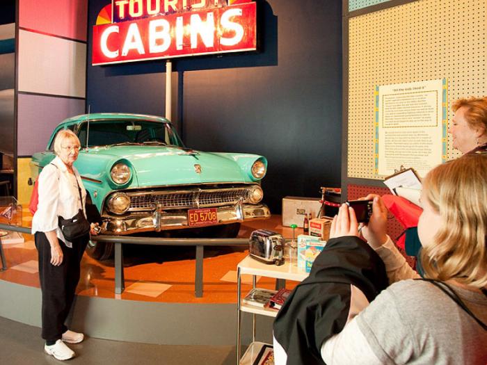 Step into a 1950s television showroom with clips from popular shows of TV’s pioneer days and the KSTP archives housed at the Minnesota Historical Society, as well as an interactive area where kids can test TV tubes to see if they are faulty. See the iconic “St. Paul Tourist Cabins” neon sign, and a 1955 Ford nicknamed "the Bluebird" by its original owners in Clinton, Minnesota.