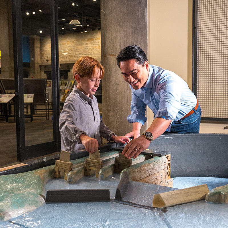 Time to get your hands wet! At the water lab you’ll see firsthand how the Mississippi powered all the mills in Minneapolis. Learn how the falling water of St. Anthony Falls powered first the logging and lumber industry and later, the flour milling industry.