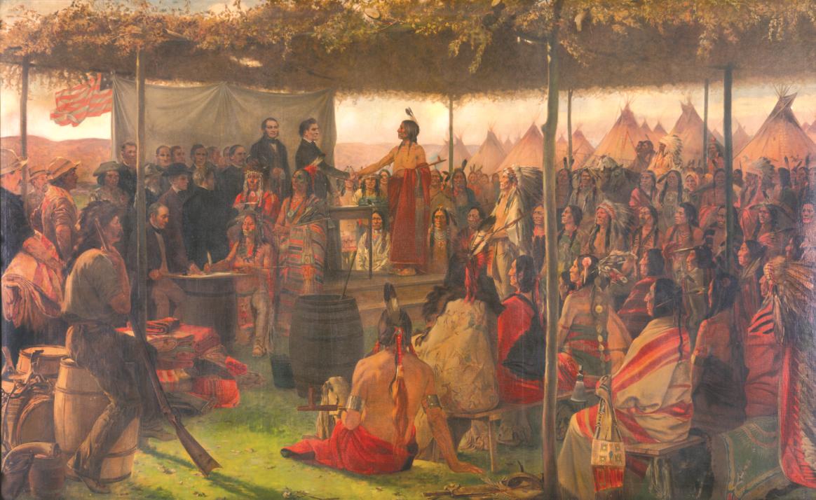 During the restoration of the Minnesota State Capitol, Minnesotans took a more critical look at the artwork that was commissioned to adorn the building for its opening in 1905. Much of that attention focused on two paintings that had been commissioned by capitol architect Cass Gilbert to hang in the Governor’s Reception Room: The Treaty of Traverse des Sioux and Father Hennepin Discovering the Falls of Saint Anthony.
