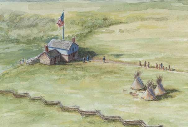 Indian Agency Council House, 1835–37. Painting by David Geister, 2012. Source: Historic Fort Snelling collections.